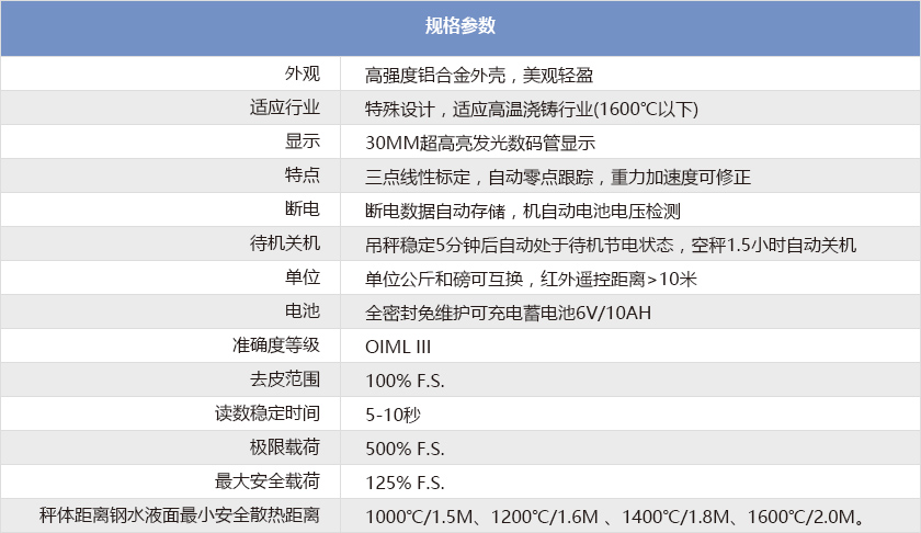 耐高溫電子吊秤的參數(shù)